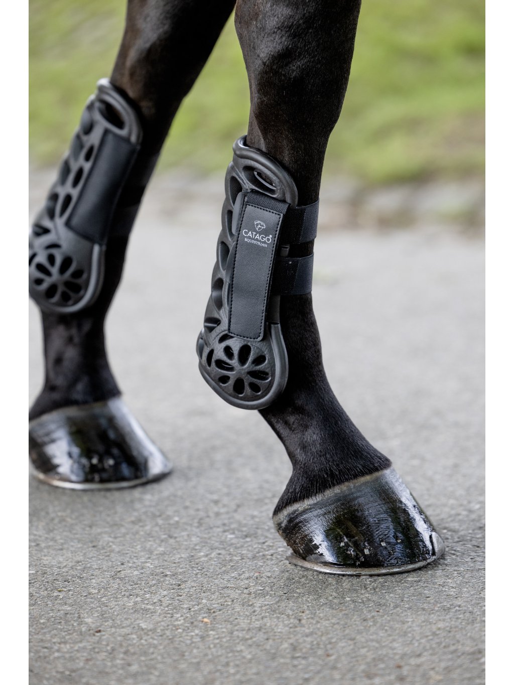 Přední šlachové chrániče z inovativního patentovaného materiálu EVA GUMFLY (Ethylene Vinyl Acetate), vyrobené z jednoho kusu antibakteriálního materiálu pohlcujícího nárazy, bezešvé, s anatomicky tvarovanou skořepinou pro perfektní přilnutí a se zapínáním na dvojitý suchý zip.