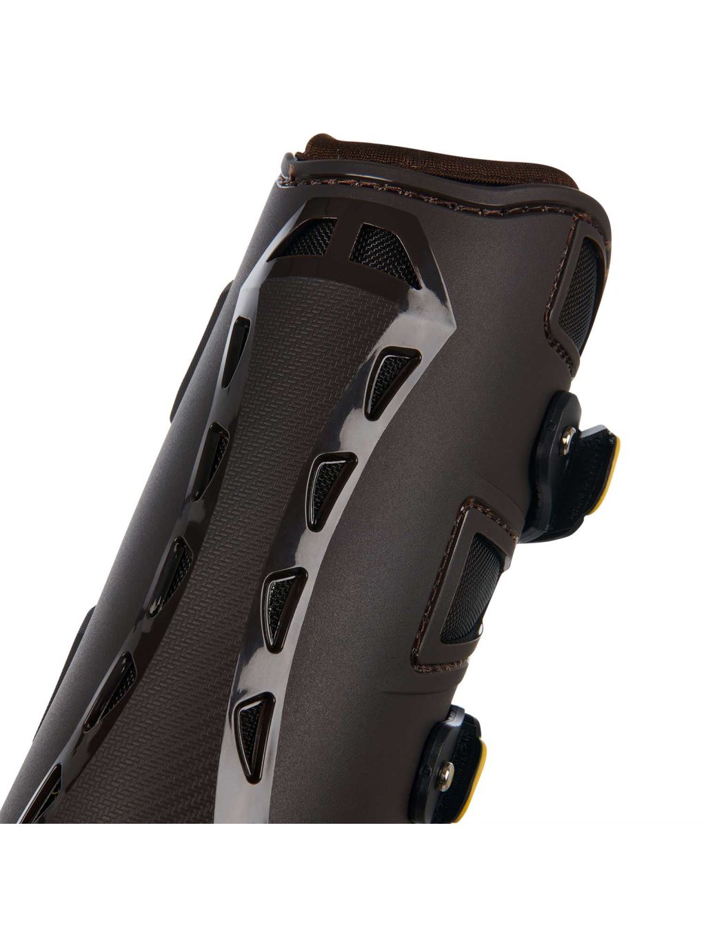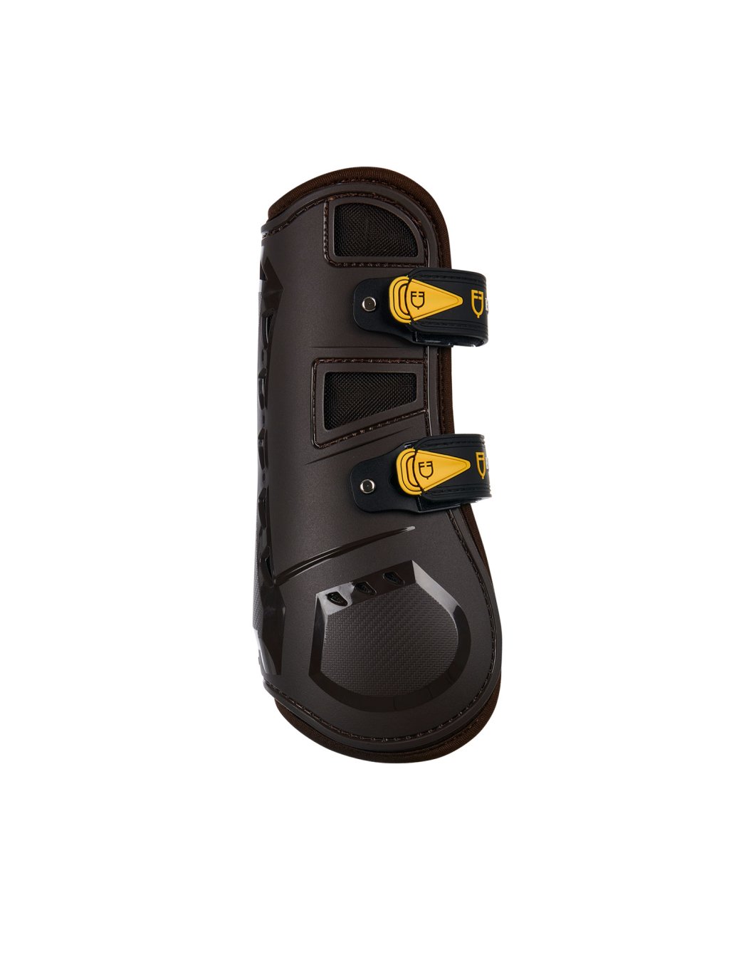 Přední kamaše Equestro Evolution jsou vyrobeny z lehkého, ale mimořádně odolného polyuretanového materiálu s ergonomickým a anatomickým tvarem, který zajišťuje perfektní přilnutí a správné usazení na noze koně.