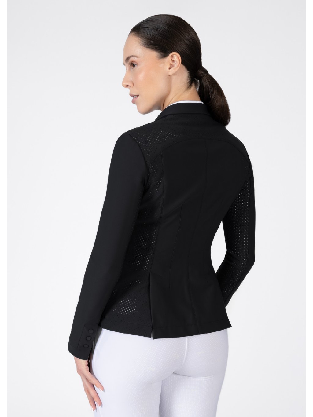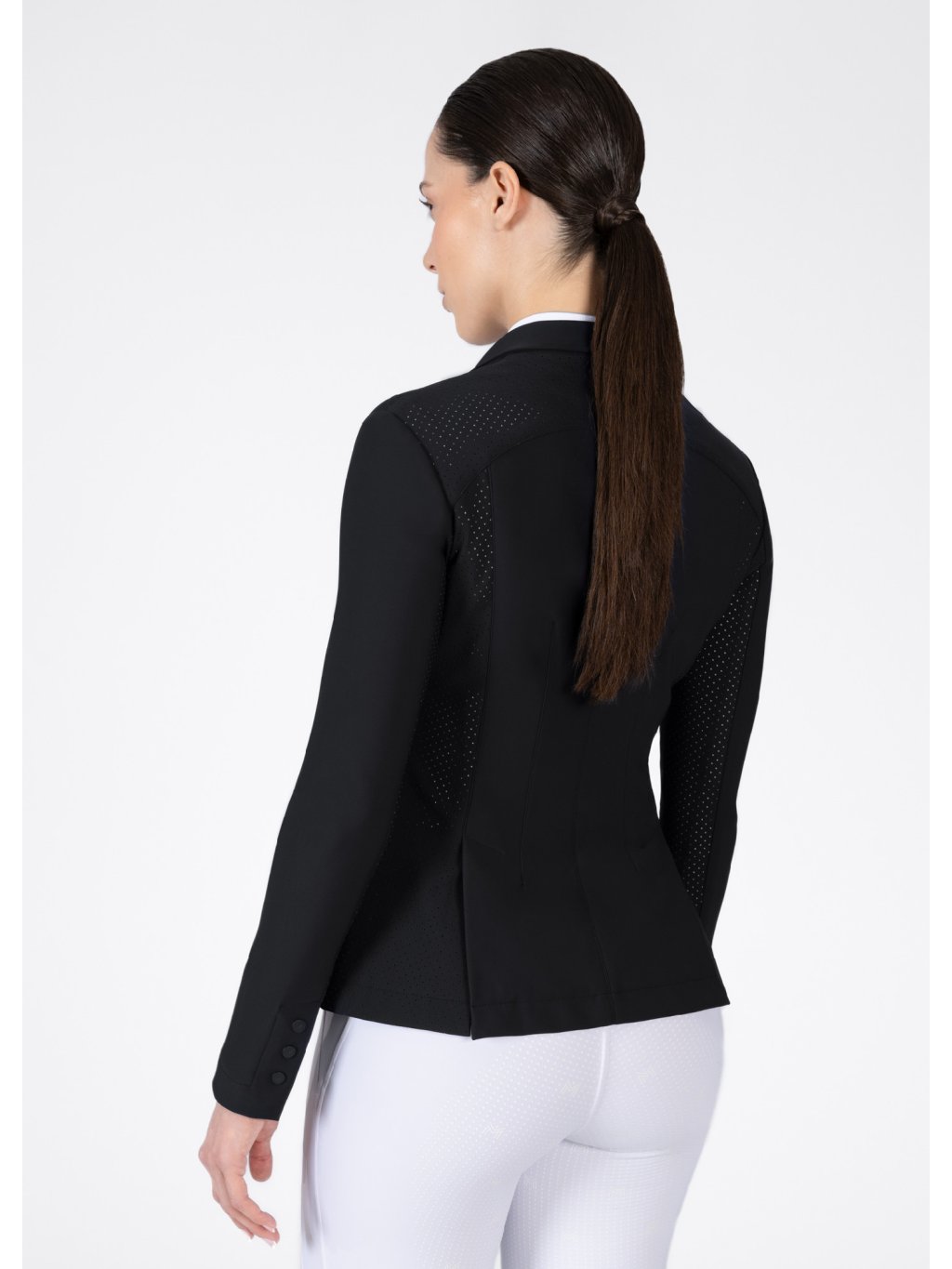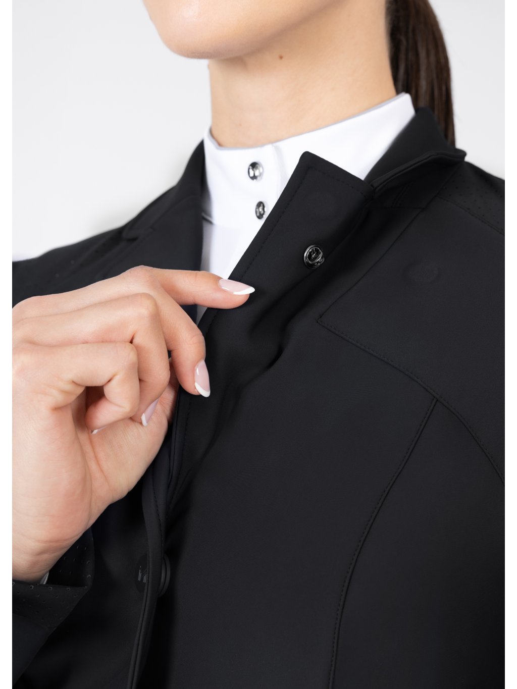Precizně střižené sako, které přináší novou éru jezdeckého soutěžního oblečení. Díky inovativně zpracovaným technikám nabízí dokonale tvarovaný, přesto maximálně pohodlný střih. Byl pečlivě testován profesionálními jezdci napříč různými disciplínami. Součástí balení je také značkový ramínko a ochranný obal na sako.