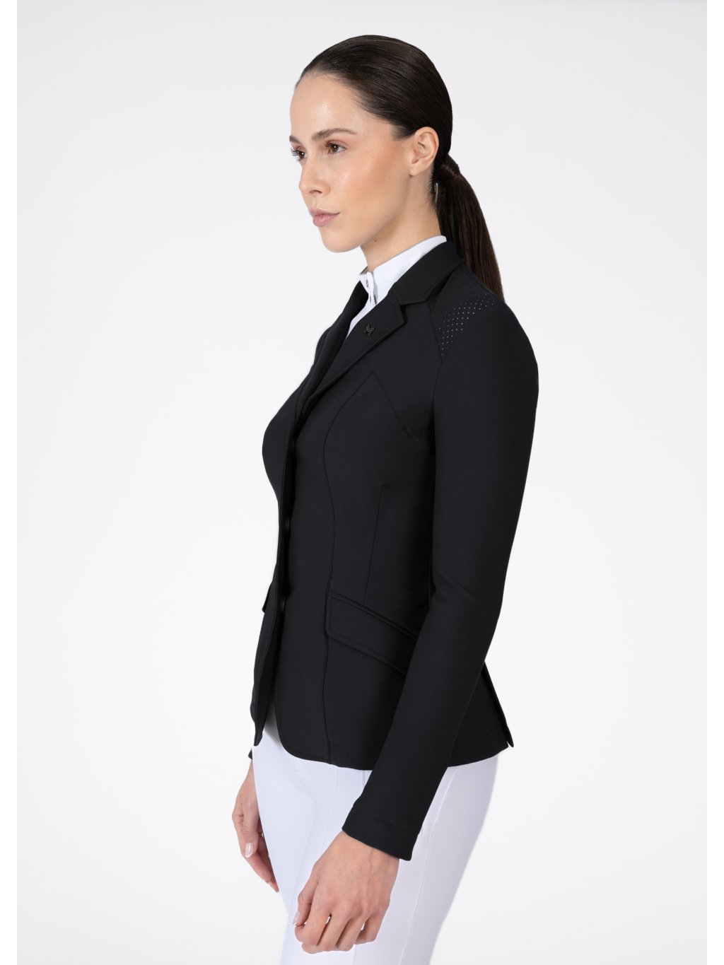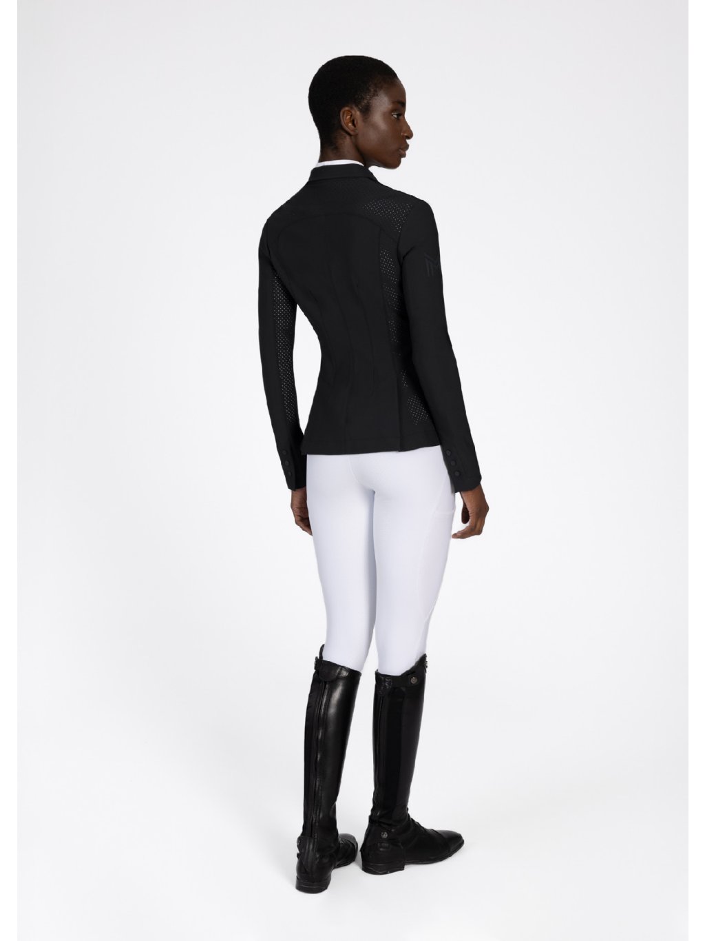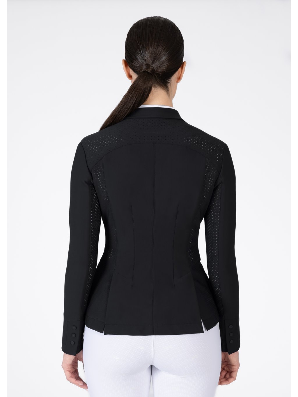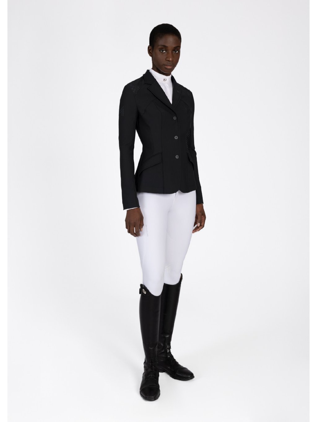 Precizně střižené sako, které přináší novou éru jezdeckého soutěžního oblečení. Díky inovativně zpracovaným technikám nabízí dokonale tvarovaný, přesto maximálně pohodlný střih. Byl pečlivě testován profesionálními jezdci napříč různými disciplínami. Součástí balení je také značkový ramínko a ochranný obal na sako.