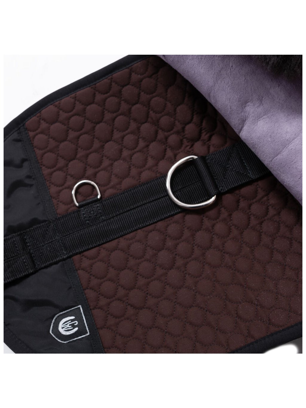 Posedlí tohoto padu je vyrobeno z vysoce kvalitní pravé jehněčí kůže, která nabízí maximální pohodlí jezdci i koni. Spodní strana je z jehněčí kůže v zadní části, čímž zajišťuje šetrné rozložení tlaku a perfektní tlumení nárazů. Vložky z kompozitní pěny a klínovitá výztuha vzadu poskytují optimální pohodlí a oporu při jízdě.