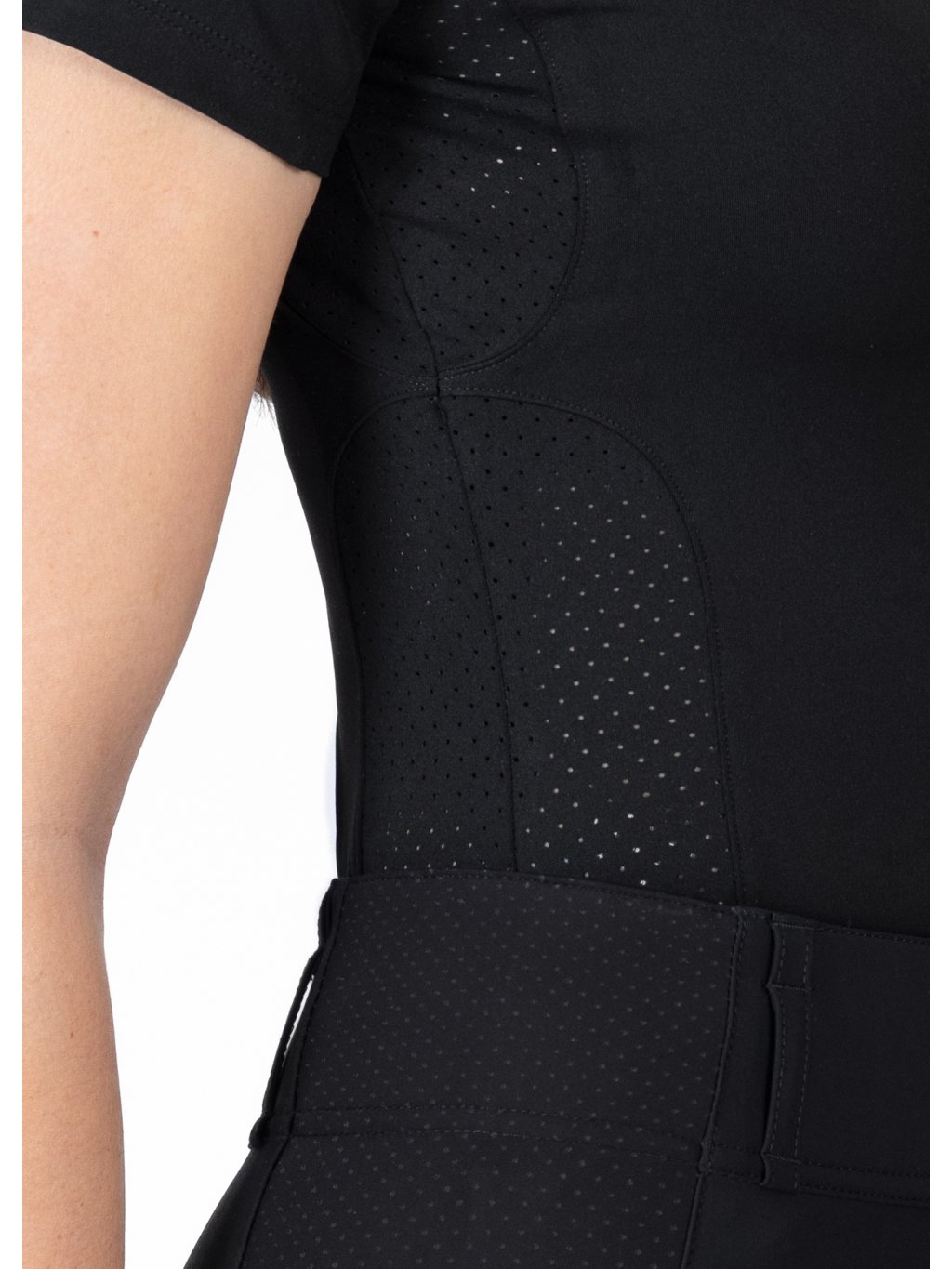 Tvarovaný střih s laserovými mikroperforacemi pro lepší ventilaci a svěží, sportovní vzhled, přitom materiál zůstává neprůhledný