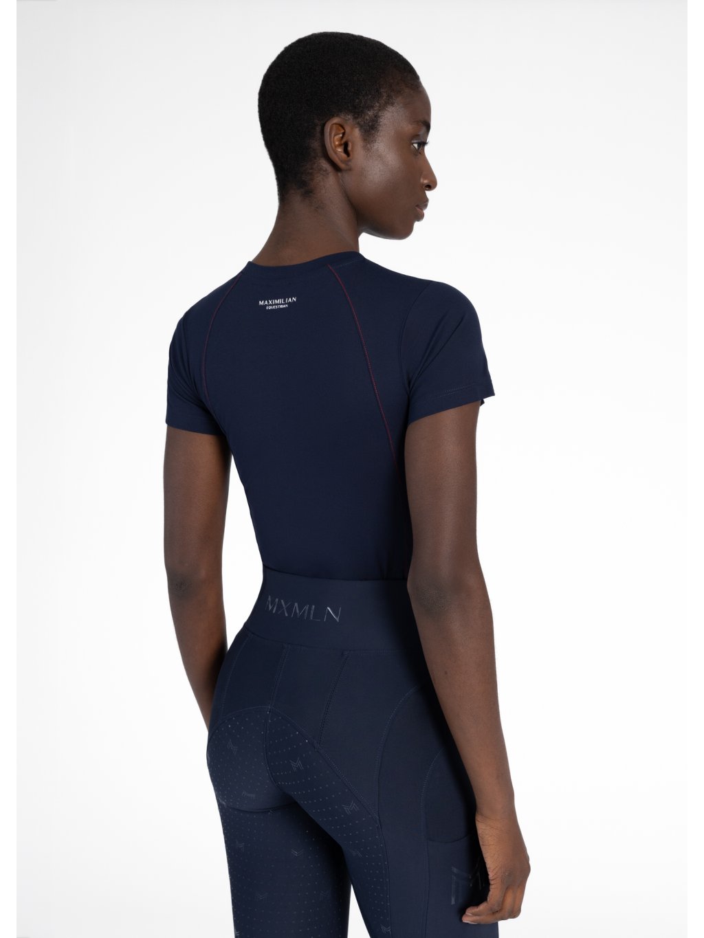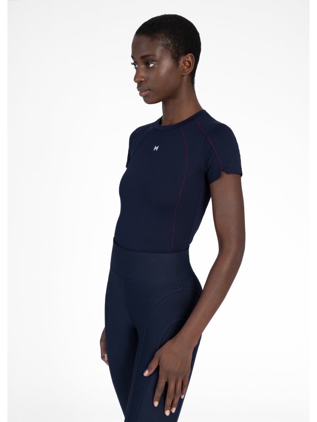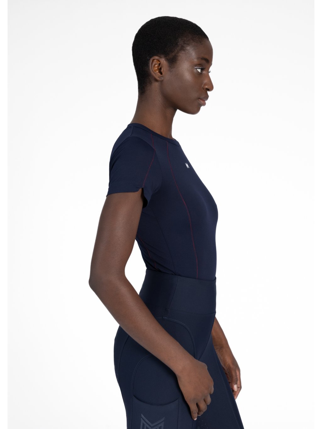 Na fotografiích kombinováno s jezdeckými legínami Outline v odstínu Atlantic. Tmavě modrá barva trička je tmavší než naše obvyklá navy varianta.
