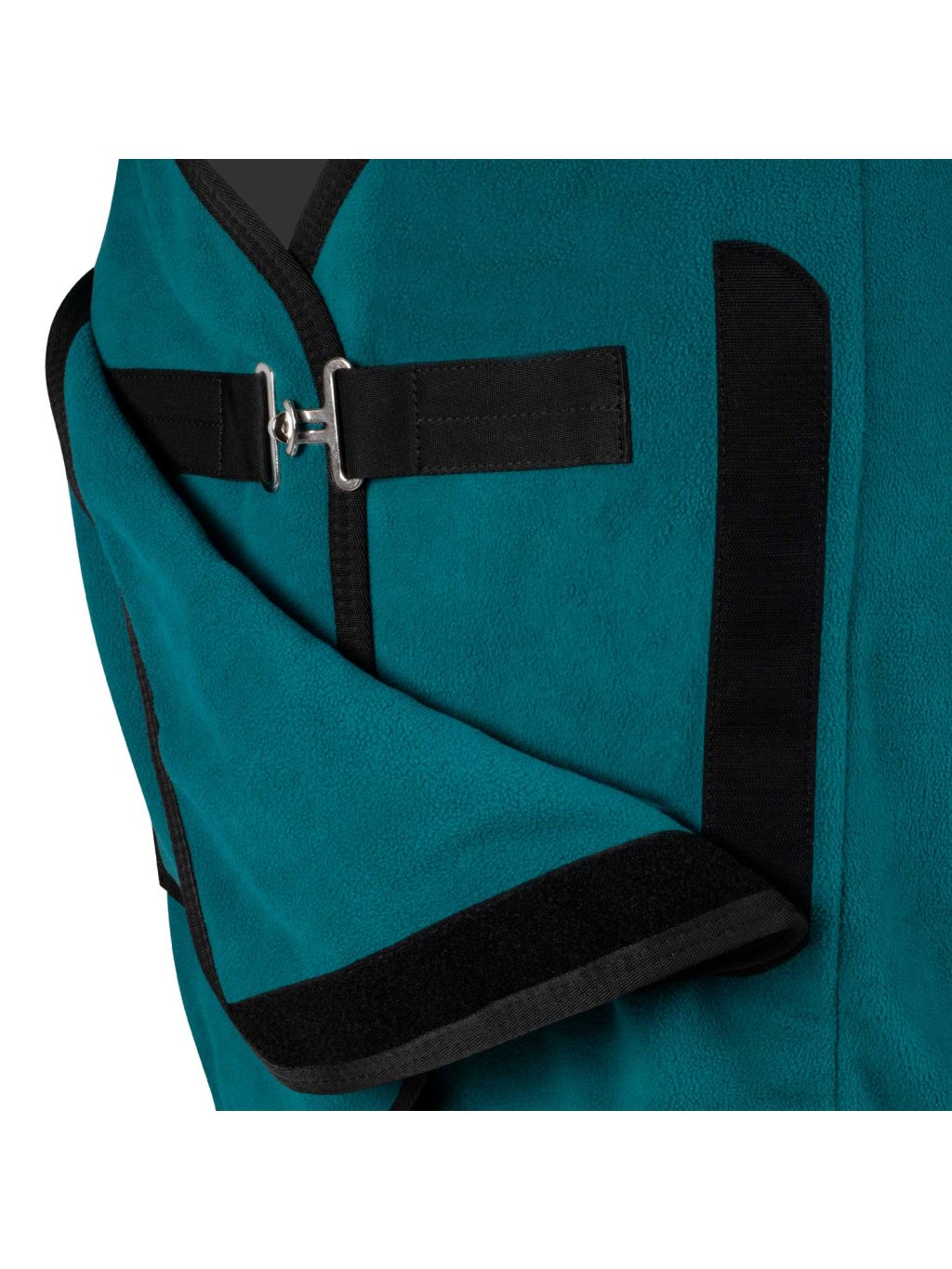 Deka má praktické přední zapínání s klopou, rychloupínací chromovanou přezku a měkkou syntetickou beránkovou výplň v oblasti kohoutku pro ještě větší pohodlí.