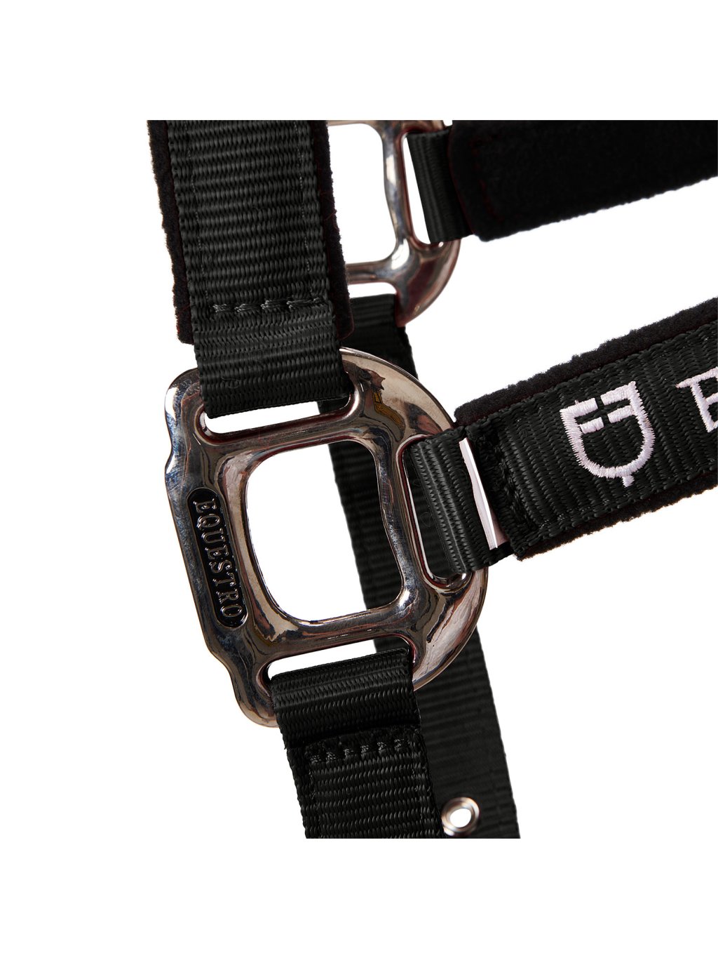 Elegantní reliéfní logo a nápis Equestro na přezkách