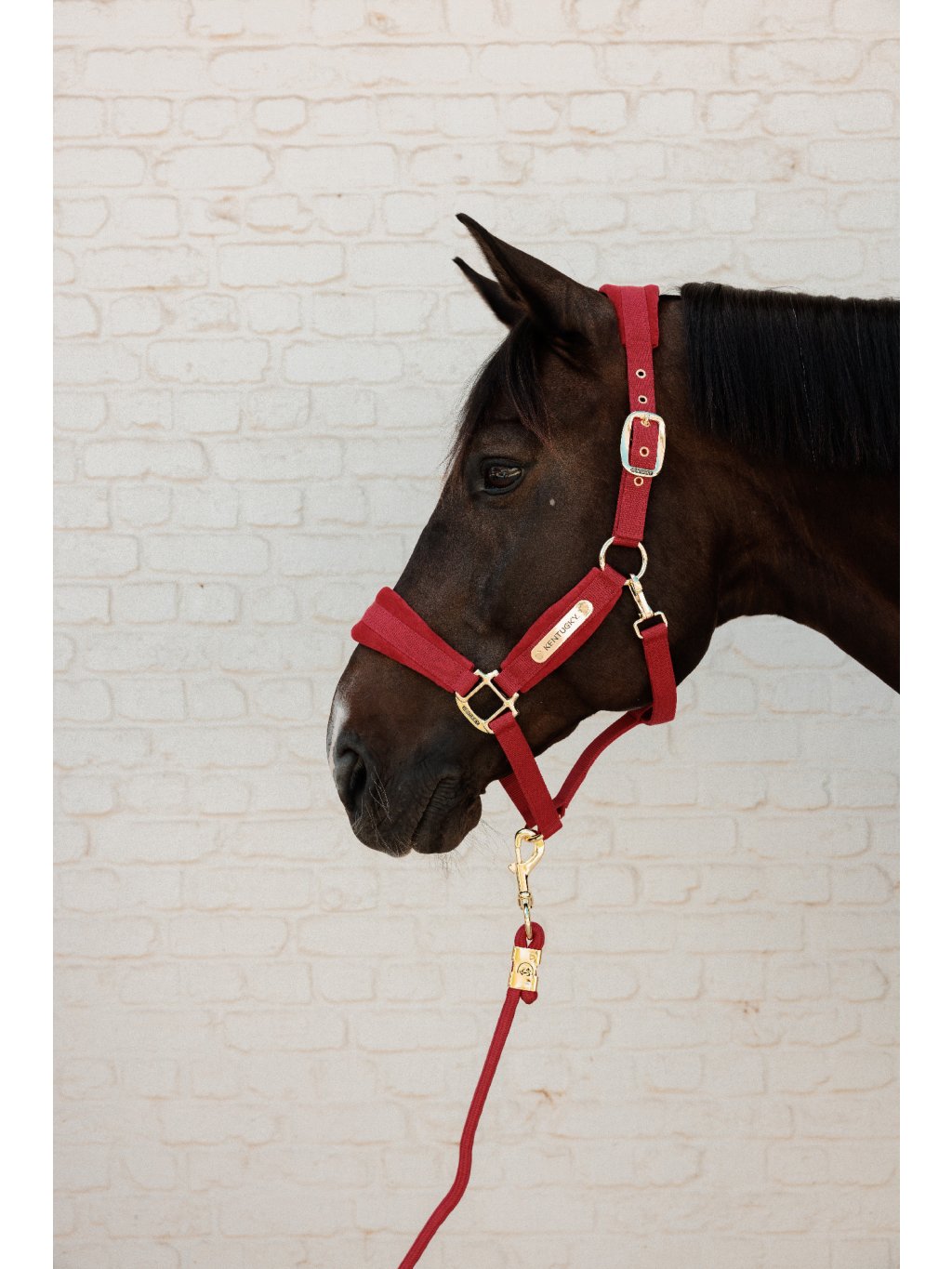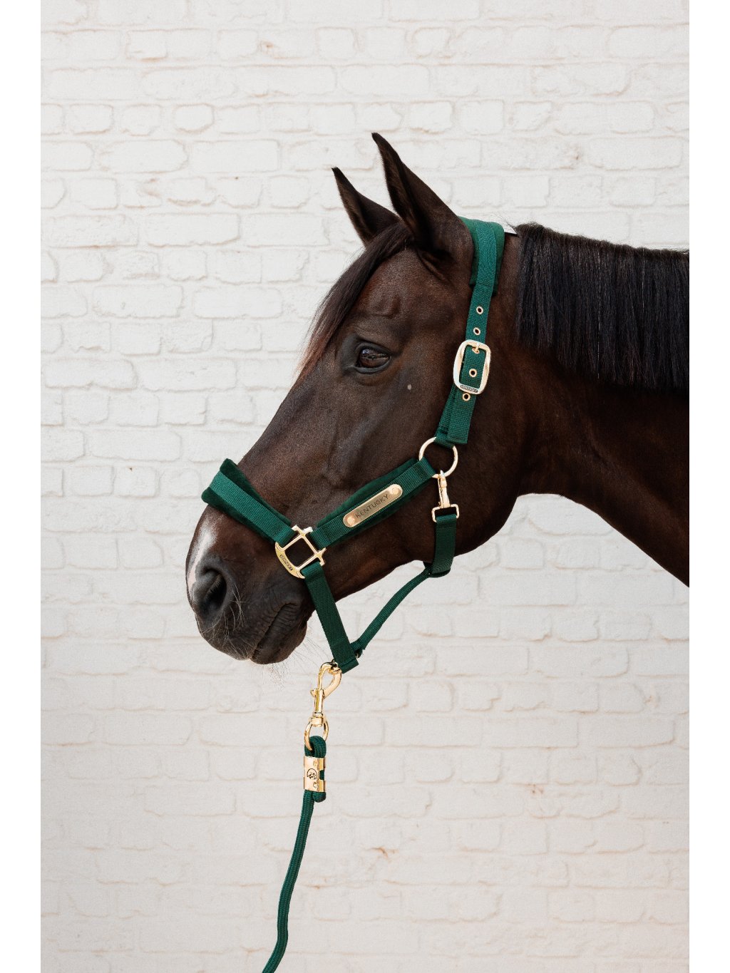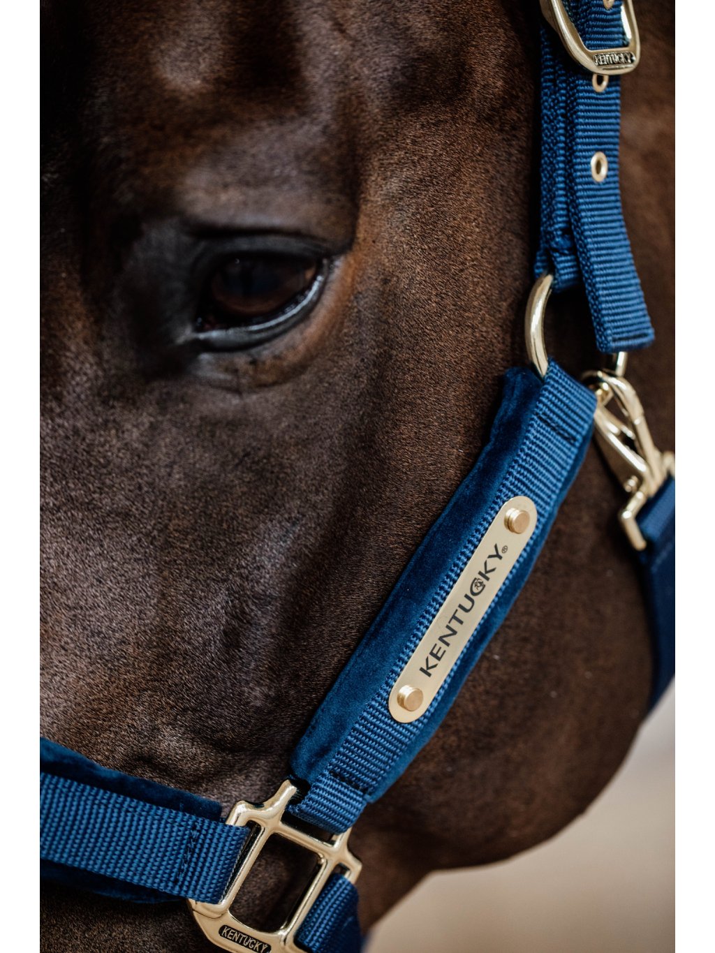 Ohlávka je vyrobena z odolného nylonu, který zajišťuje maximální bezpečnost vašeho koně. Oblasti, kde je nejvíce potřeba pohodlí – nánosník, lícnice a nátylník – jsou opatřeny měkkým sametovým polstrováním. To je nejen hebké na dotek, ale také příjemné při nošení. Stylový vzhled podtrhuje zapínání se zlatou mosaznou karabinou. Díky možnosti nastavení na obou stranách nátylníku se ohlávka dokonale přizpůsobí každému koni.