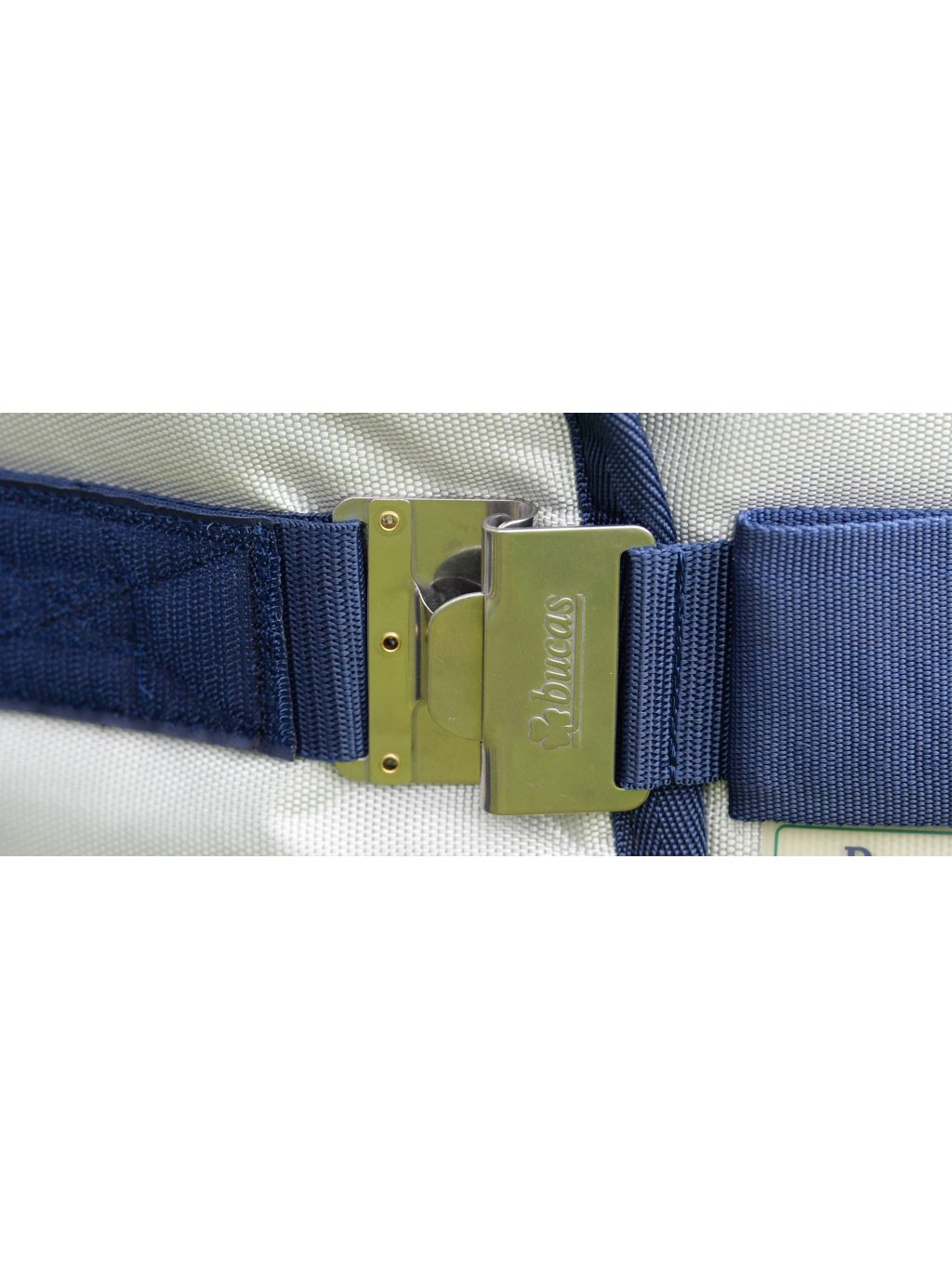 Součástí jsou elastické nožní popruhy, křížové zapínání pod břichem a kryt ocasu pro maximální ochranu. Reflexní pruhy zvyšují viditelnost za šera. Deka je kompatibilní s přípojnými krčními díly a poddečkami Bucas.
