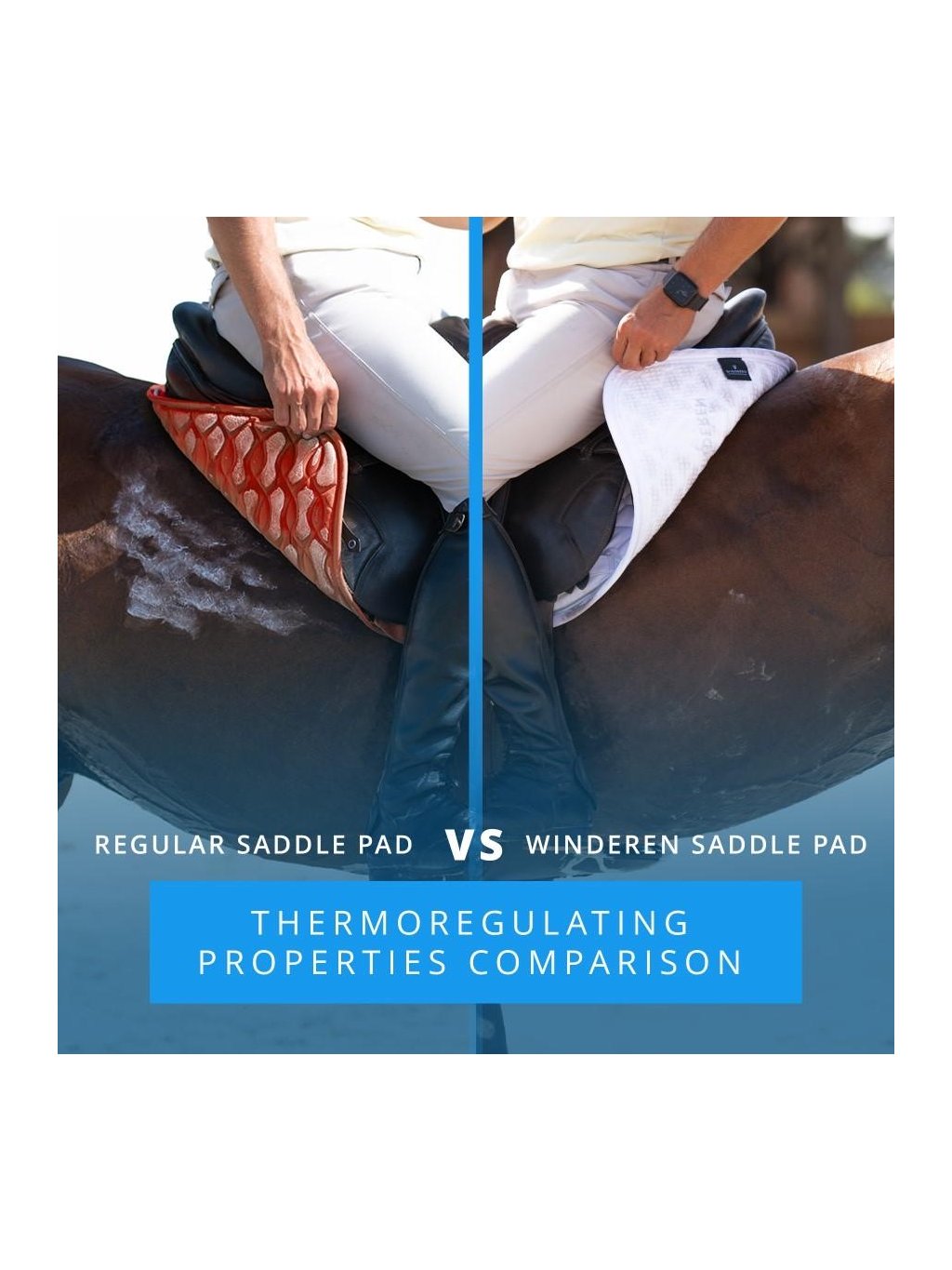 Pocení během tréninku je pro koně přirozeným mechanismem, kterým snižuje tělesnou teplotu a zabraňuje přehřátí celého těla. Proto by mělo používané jezdecké vybavení zajistit účinné odvádění potu - aby se tělo mohlo ochladit, a kůň se tak při jízdě cítil příjemně. To je obzvláště důležité v horkých dnech nebo během intenzivního tréninku.