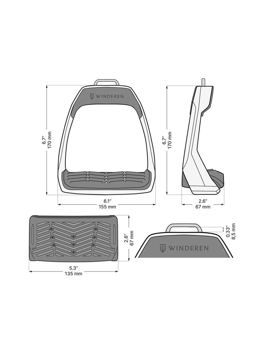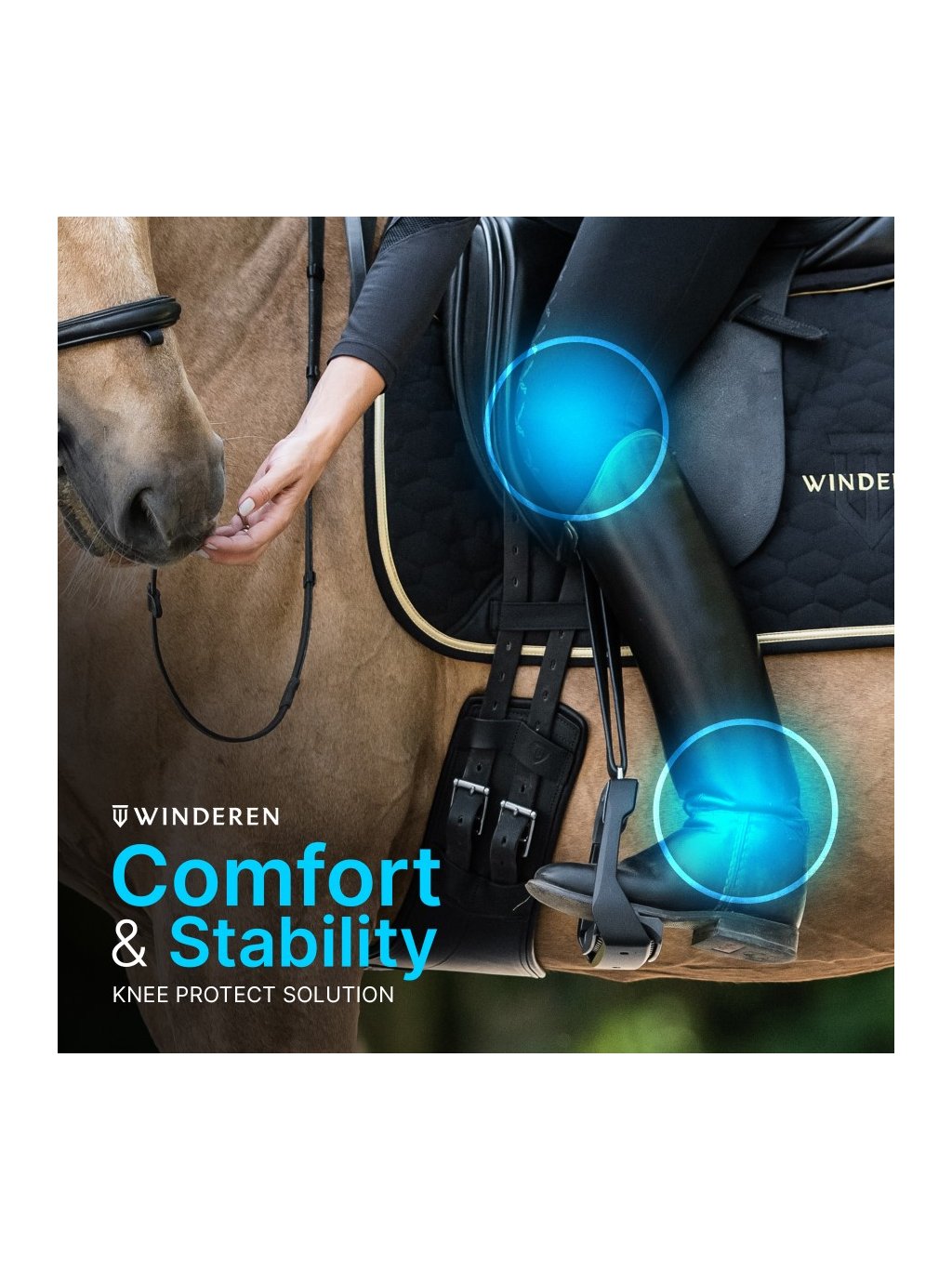 Třmeny Winderen výrazně zlepšují účinnost nohou jezdce. Díky menším silám působícím na vazy a svaly může holeň lépe pracovat a chodidlo je ve třmeni stabilizováno.