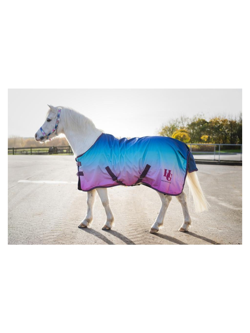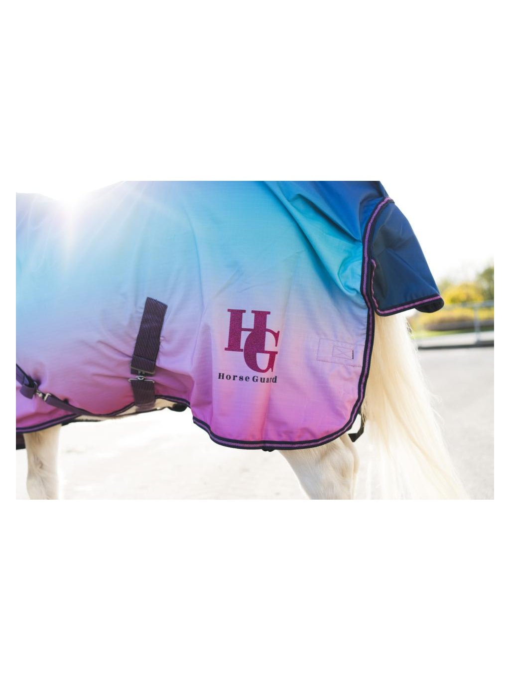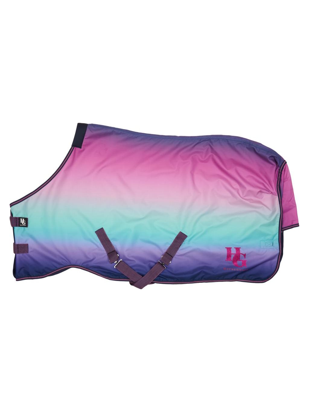 Deka má barevný potisk s plynulými přechody barev, který ladí s ostatními produkty z kolekce EQ a HG KIDS pro tuto sezónu. Na zadní části je třpytivé logo HG a popruhy i lem mají jemné třpytivé proužky.